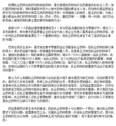 摘要 我國執(zhí)業(yè)藥師缺口太大 是什么緣由?